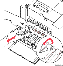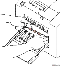 Caution: Hot surfaces exist behind the upper paper-feed rollers. To avoid personal injury during cleaning procedures, do not reach in behind these rollers.